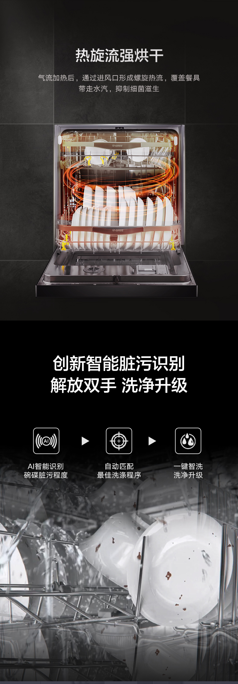 搭載雙擎熱烘干科技,除菌又除味;洗烘存一體,智能臟污識別,除菌率達(dá)99.99%
