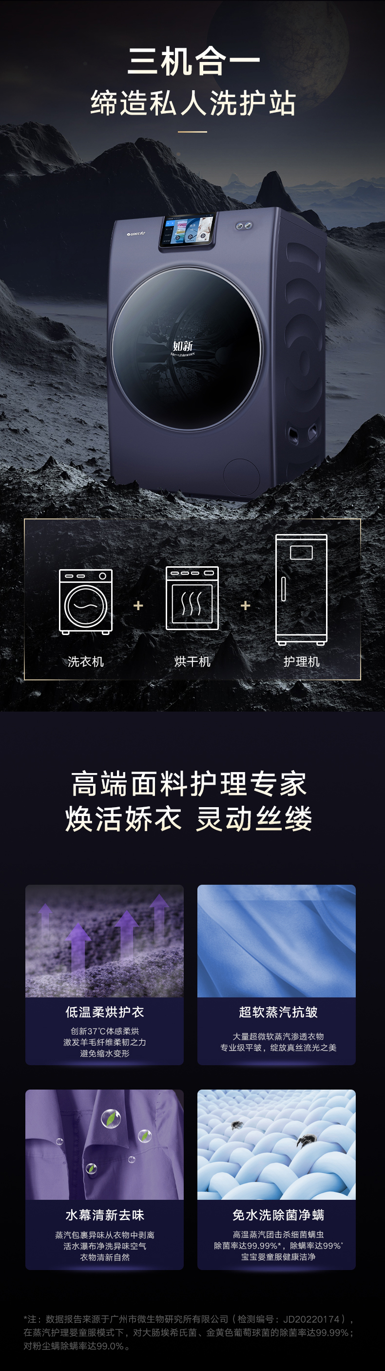 37℃低溫柔烘不傷衣;全域超微蒸汽洗2.0;ICleaner全域智清潔