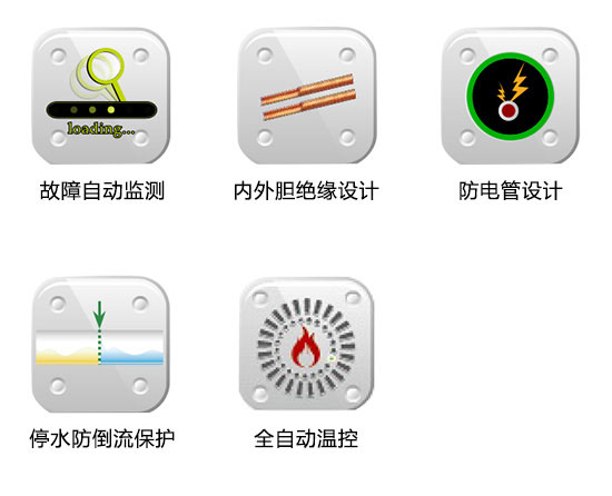 配有漏電開關保護、防電管設計、意外漏電保護、停水防倒流保護、超壓保護等多項保護功能,讓您使用安全無憂。